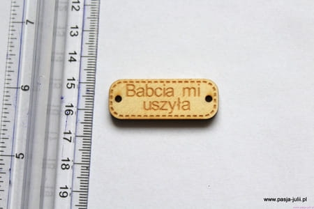 Przywieszka drewniana 4 CM BABCIA MI USZYŁA