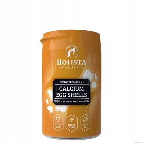 Preparat dla psów i kotów w formie mączki ze sterylizowanych skorupek jaj kurzych. Preparat przeznaczony do wzbogacenia diety w celu uzupełnienia niedoboru wapnia. Dedykowany diecie gotowanej, eliminacyjnej oraz B.A.R.F.