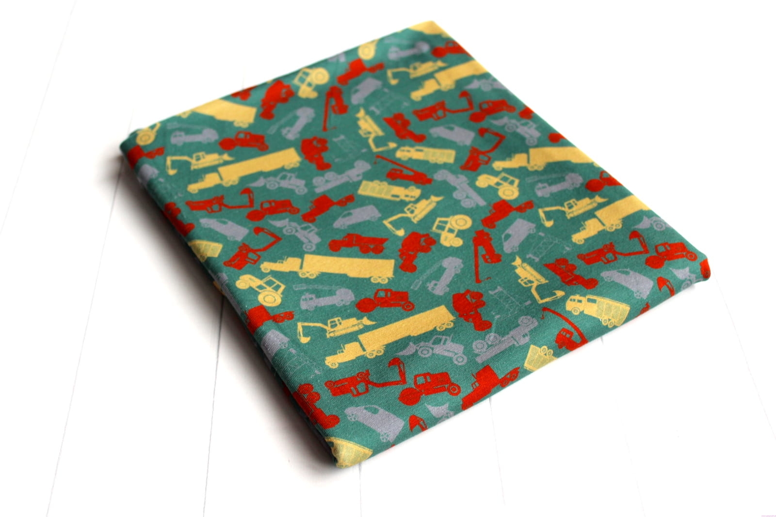 Wzór: Koparki i ciężarówki na tle zieleń butelkowa